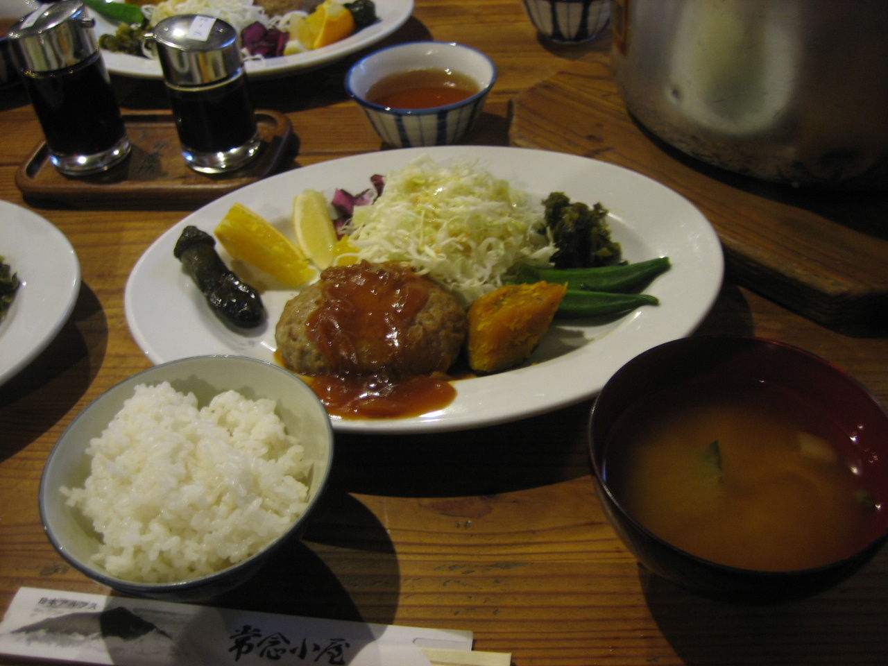 常念小屋の夕食。凝ったところはないがボリュームはある。