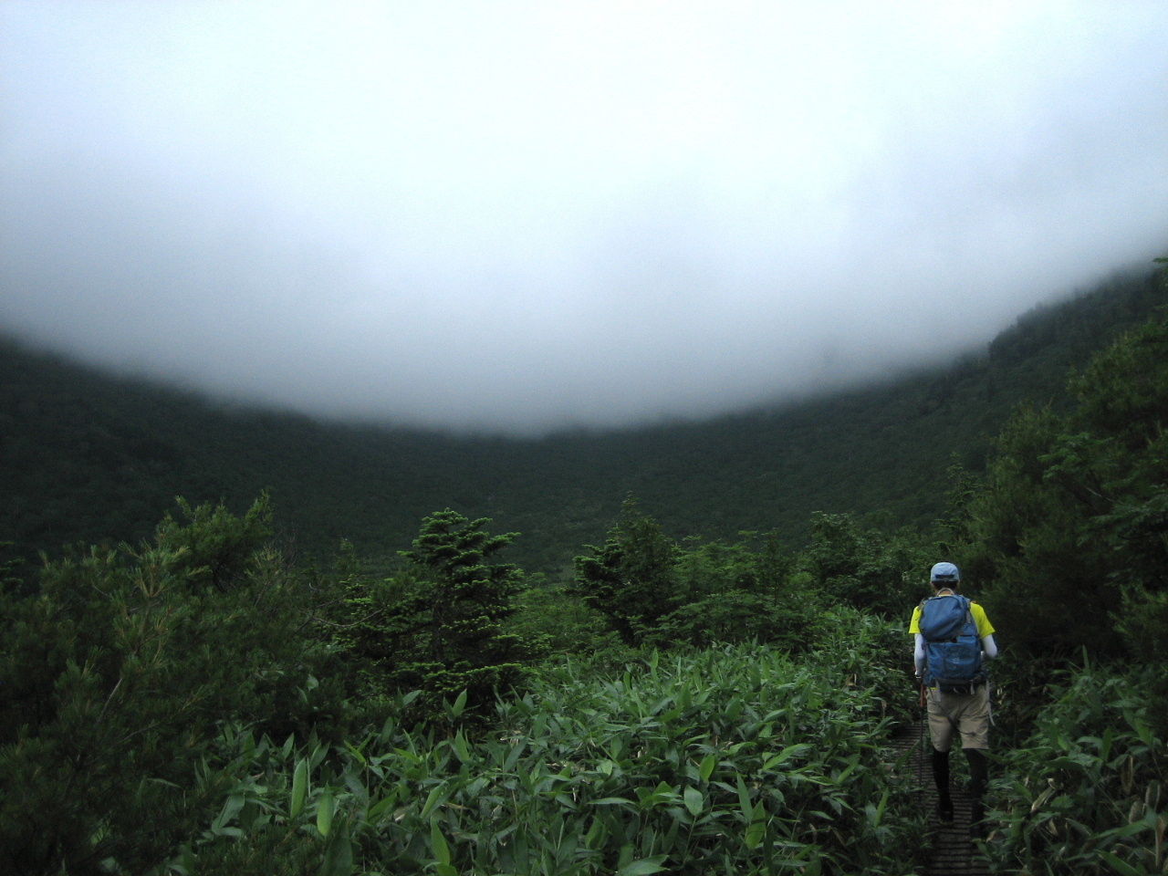大日平を見下ろす。湿度のせいかいつもより近く見える。
