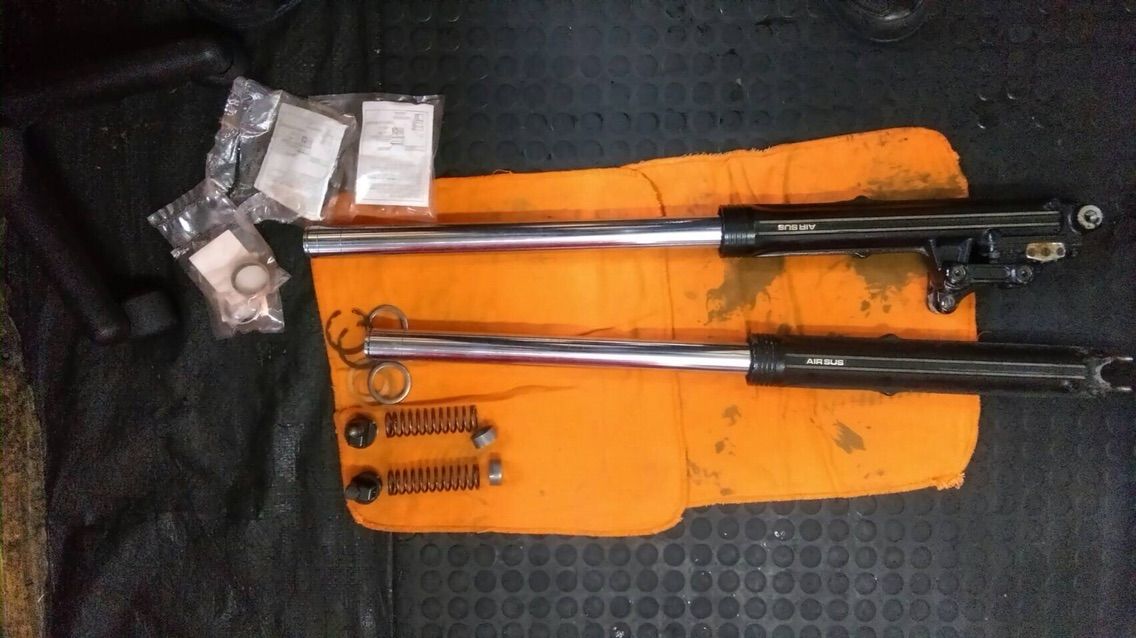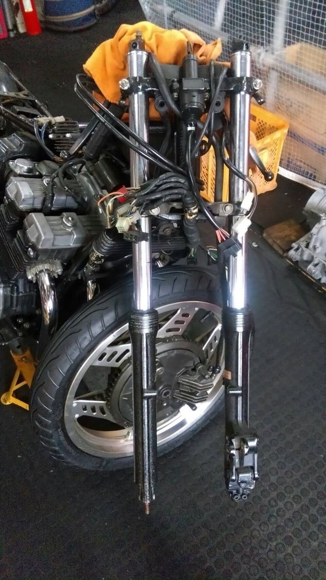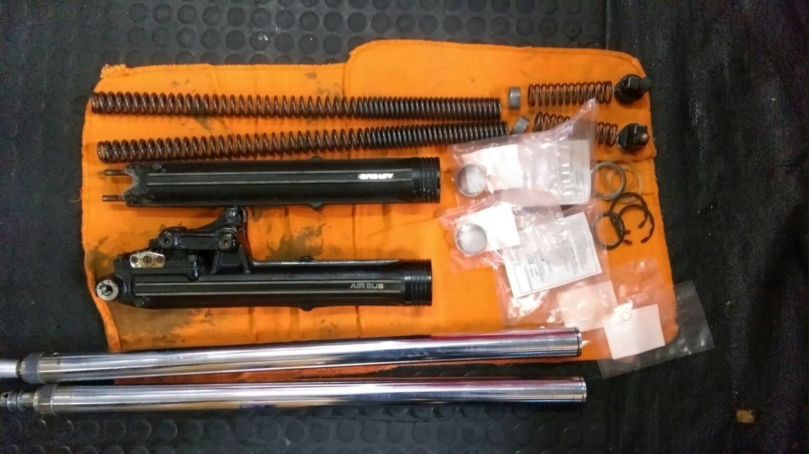 取り外したフロントフォークは分解へ!
