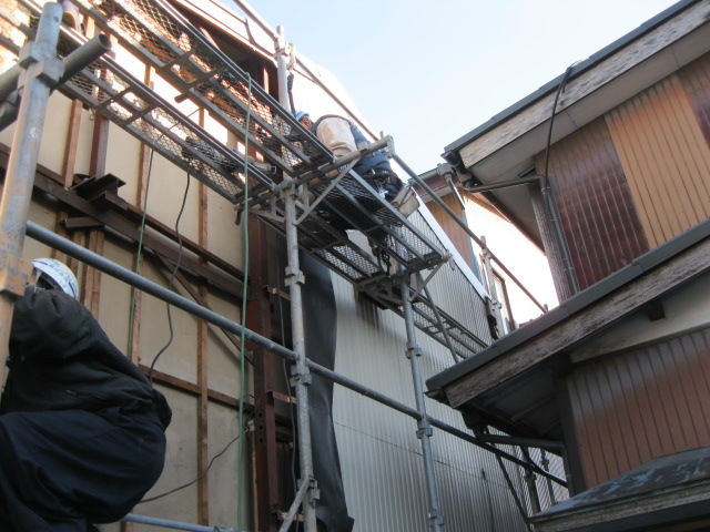 1・・・まずは足場をかけ、既存外壁の解体