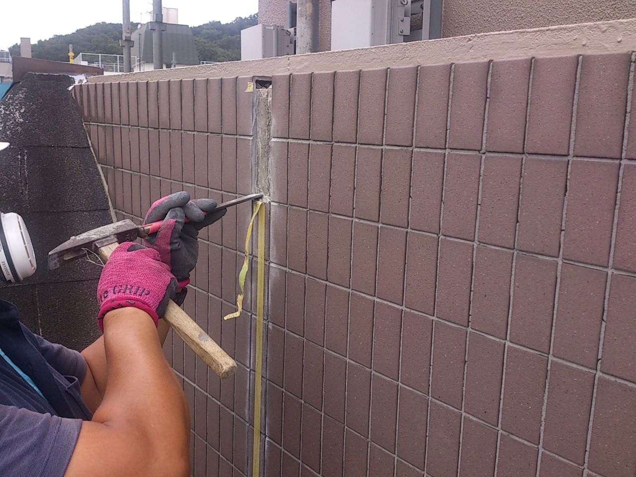 4・・・・ハツリ。タイルの不良個所を撤去