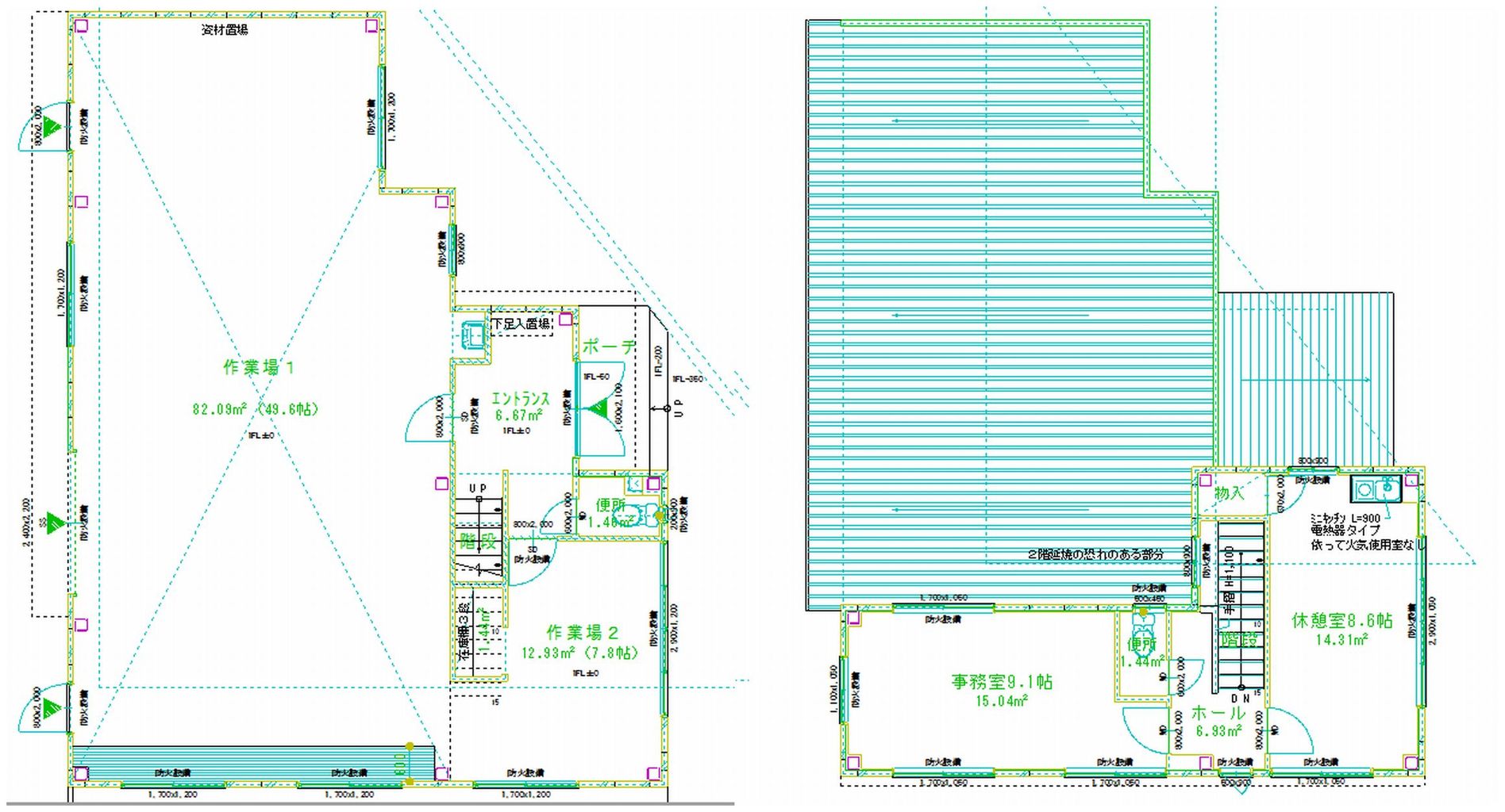 事務室・休憩室は窓を多めに、スッキリと明かり空間に。![]()