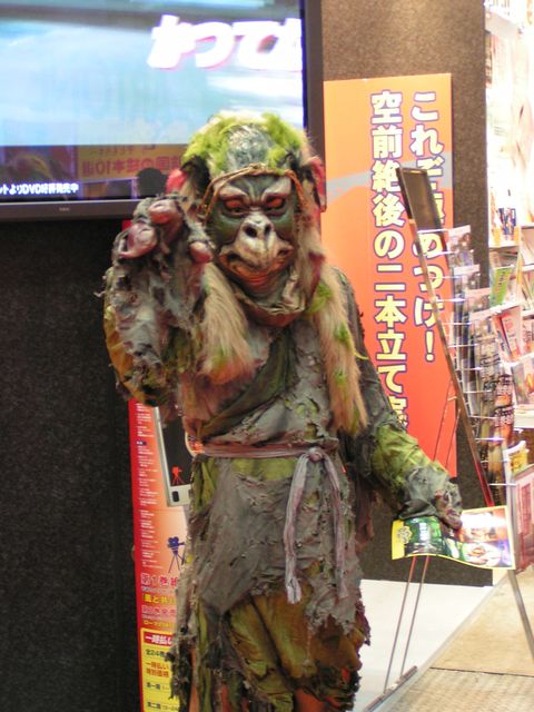 ブースの人と話するハイジさん近影。おまけ。角川ブースの「妖怪大戦争」でカメラを向けるとしっかりポーズを取ってくれた妖怪たち。載せといたよ。