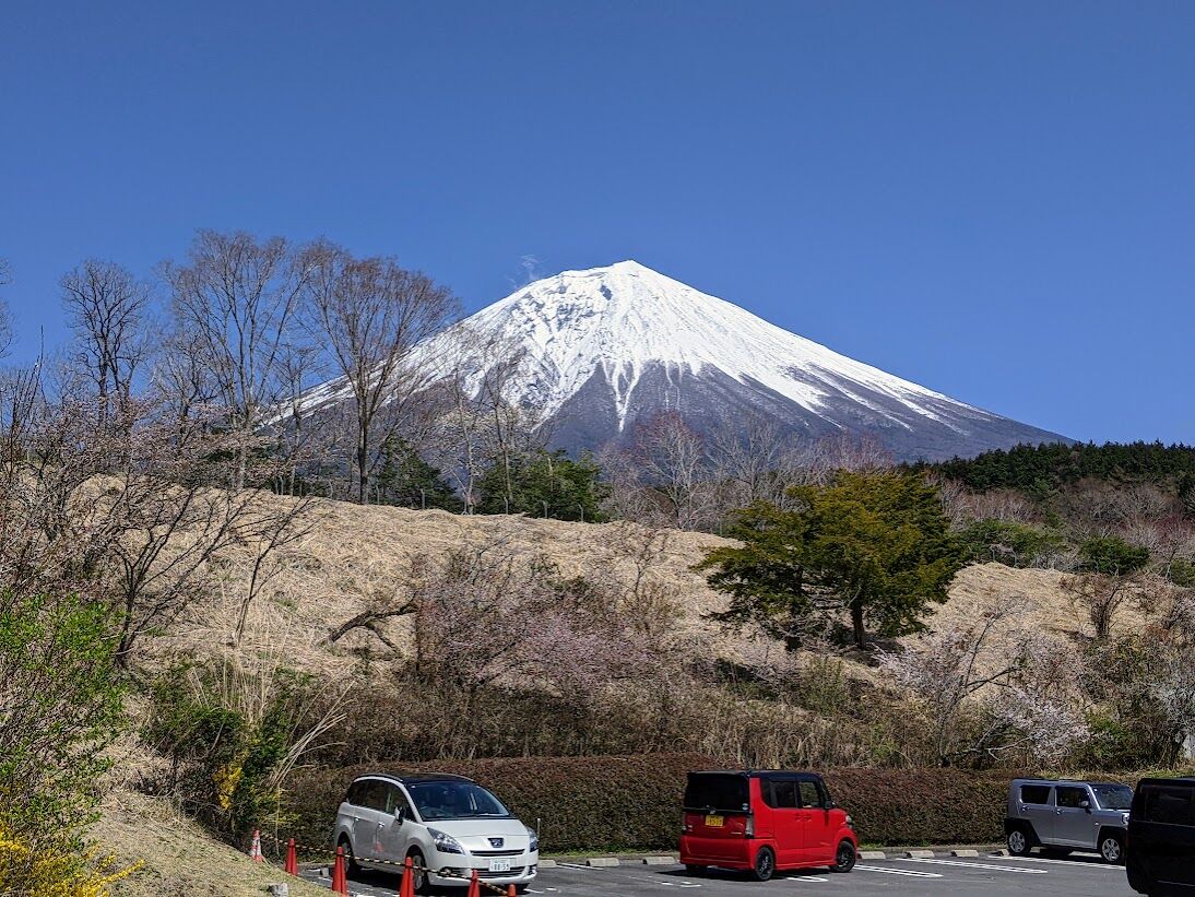 2025年04月29日 4月14日に富士桜自然墓地公園の桜 富士宮市の富士桜自然墓地公園へ嫁と姉と3人でドライブ。 墓参りに行きました。 僕は後部座席に座り写真ばかり撮ってました。マイカーのスカイルーフで青空の中、富士山へ向かい走りました。国道139号線を走行中に横窓に写った富士山。富士宮市の宮五本松を通過中にそびえ立つ富士山。富士桜自然墓地公園に入りました。 富士山と桜。 カメラを持った多くの観光客が来ておりました。富士山の麓に眠る先祖に挨拶を終え、富士山は堂々たる姿でした。お墓の付近に咲いていた桜。 ソメイヨシノでは無さそうな気がした。我等の先祖が、日本の柱たる富士山の麓で、多くの桜に囲まれ、嬉しく感じました。 応援をよろしくおねがいしますにほんブログ村高次脳機能障害ランキング タグ :#富士桜自然墓地公園#桜#富士山#富士宮市#墓参り#ドライブ