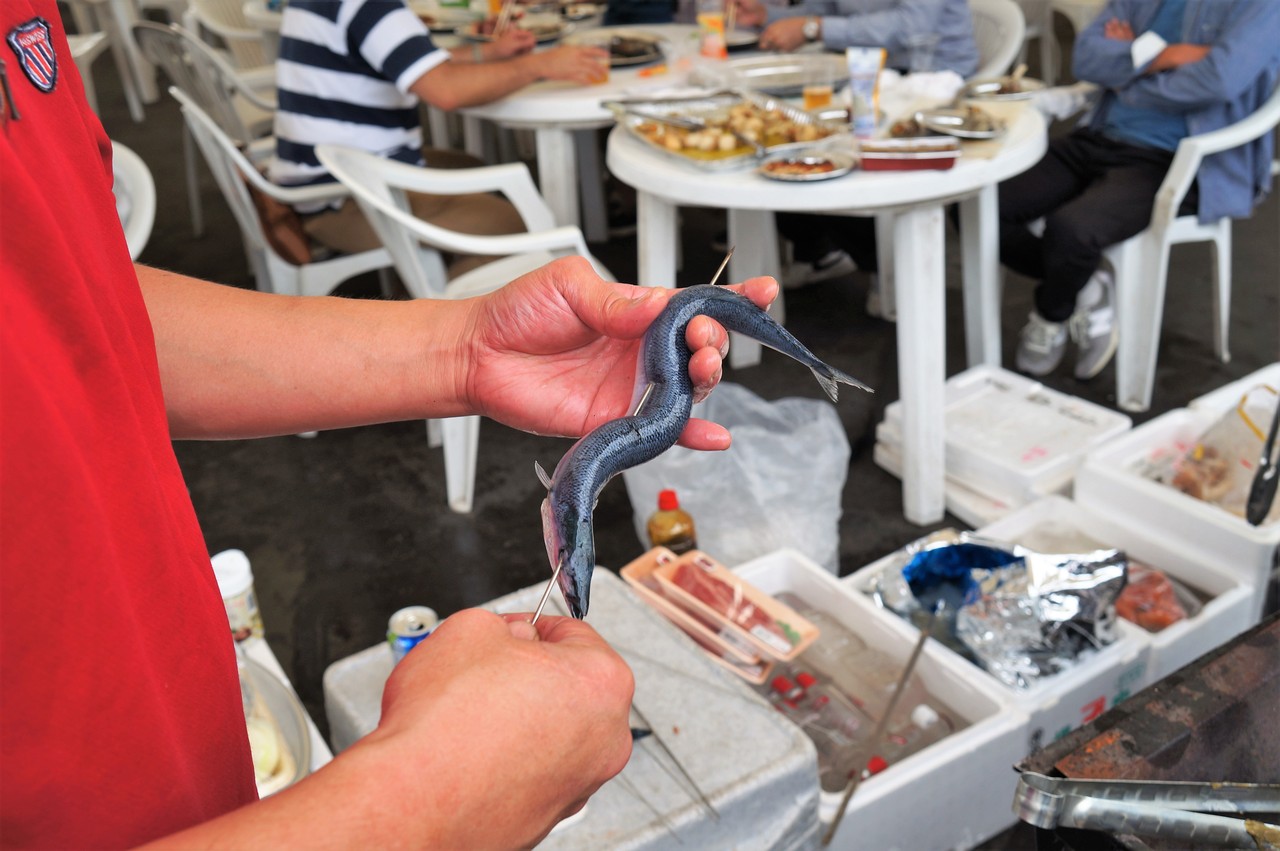 秋刀魚に串を打ち始めましたよ~
