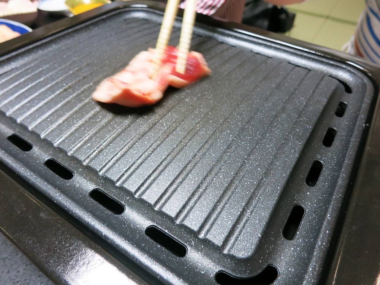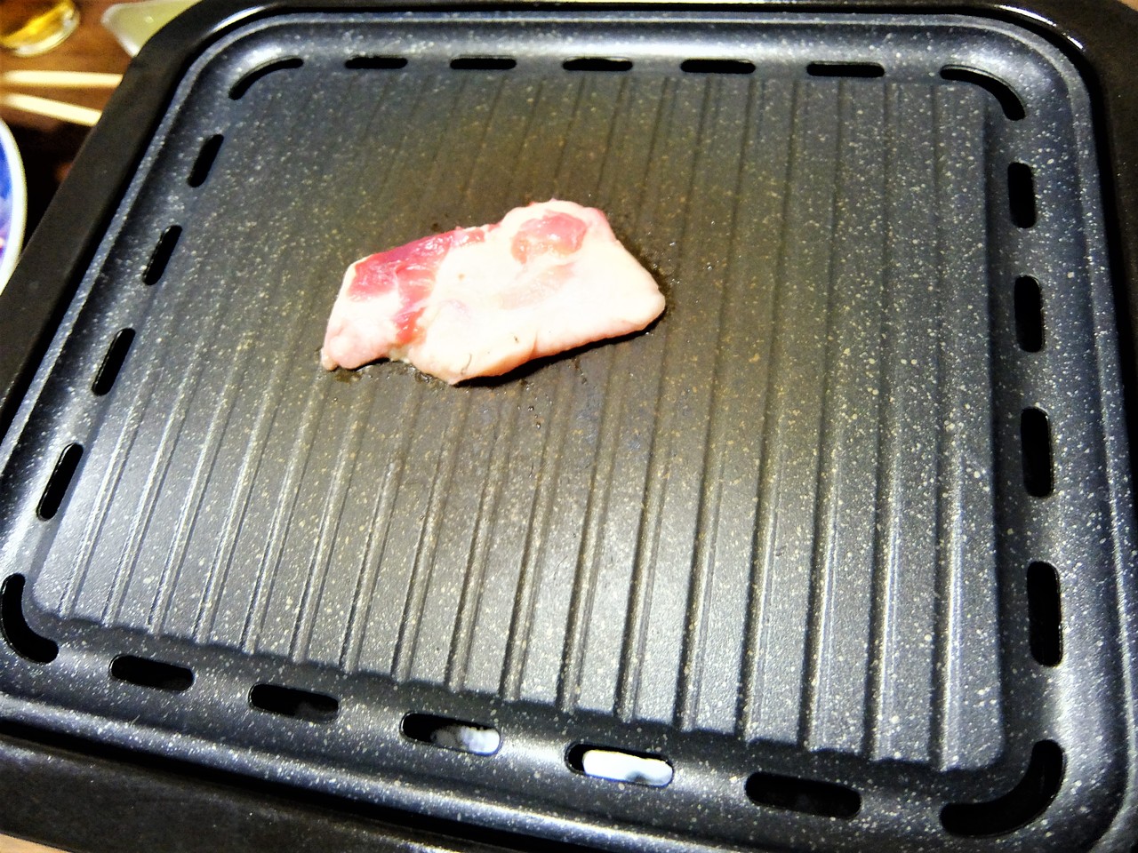 鉄板に 皮の油を敷き 普通の焼肉のように