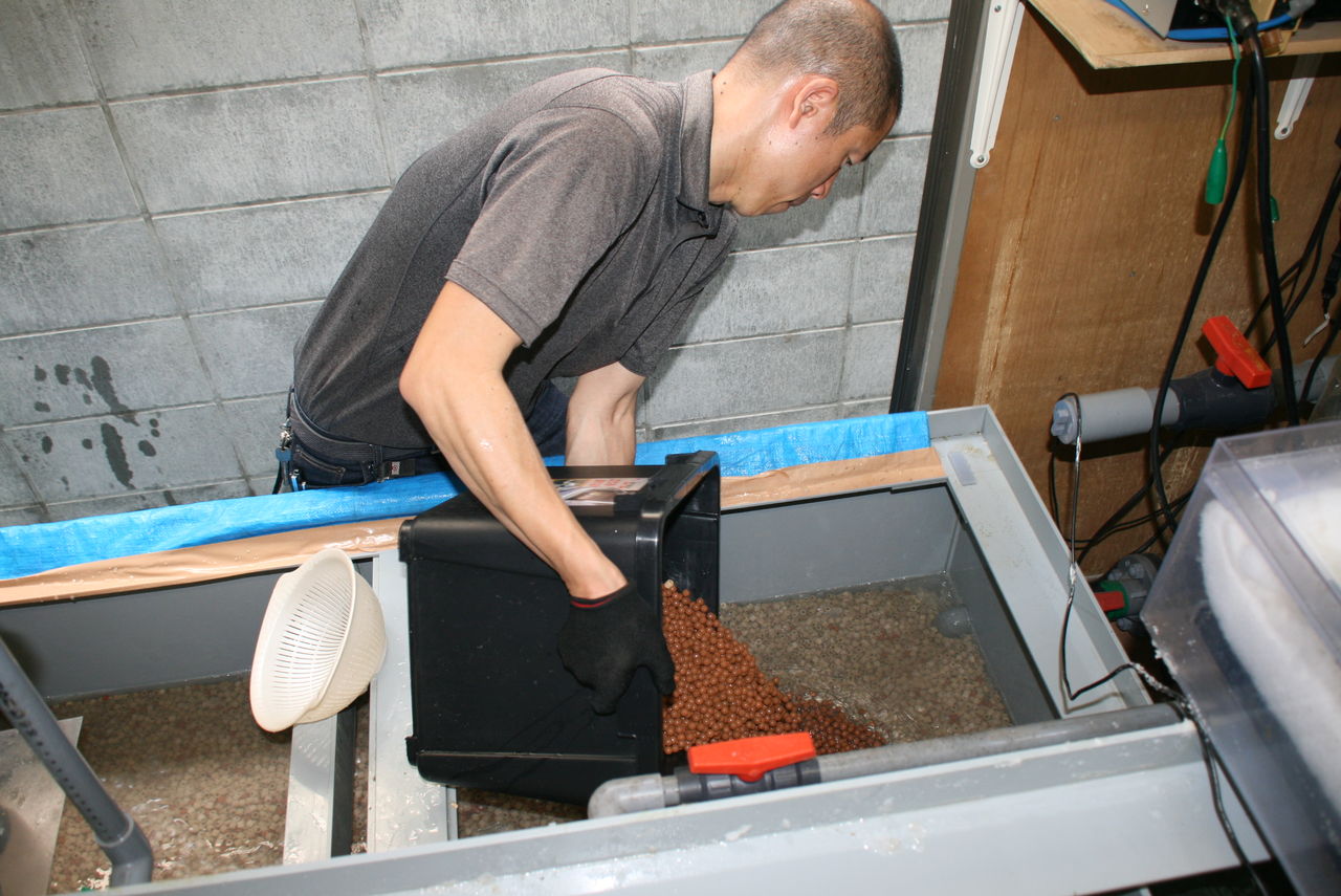 だって 今日は くまぱぱが 濾材を出す担当。