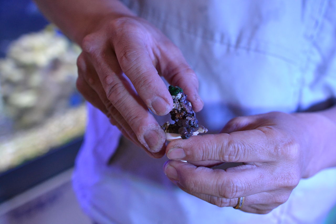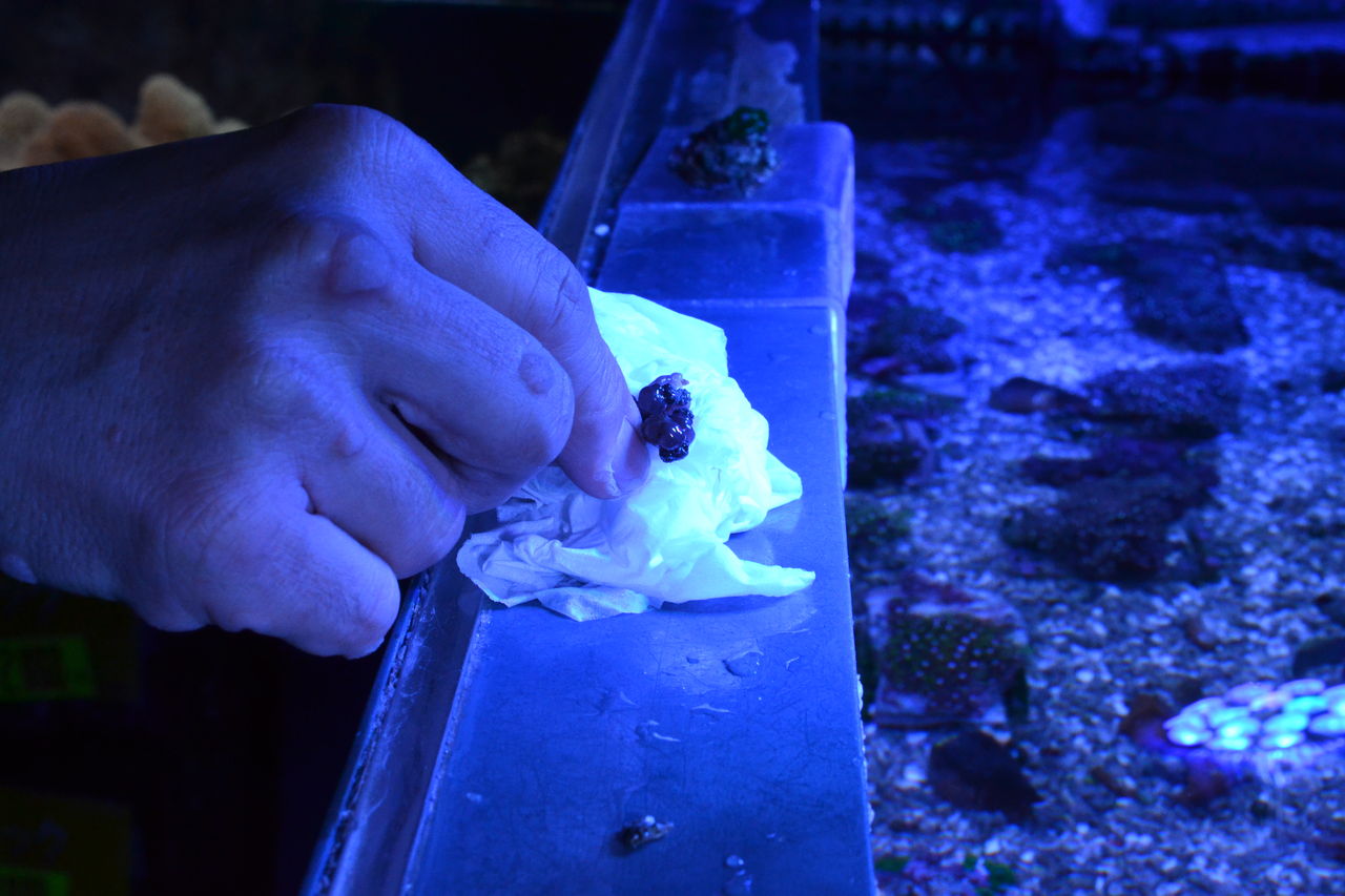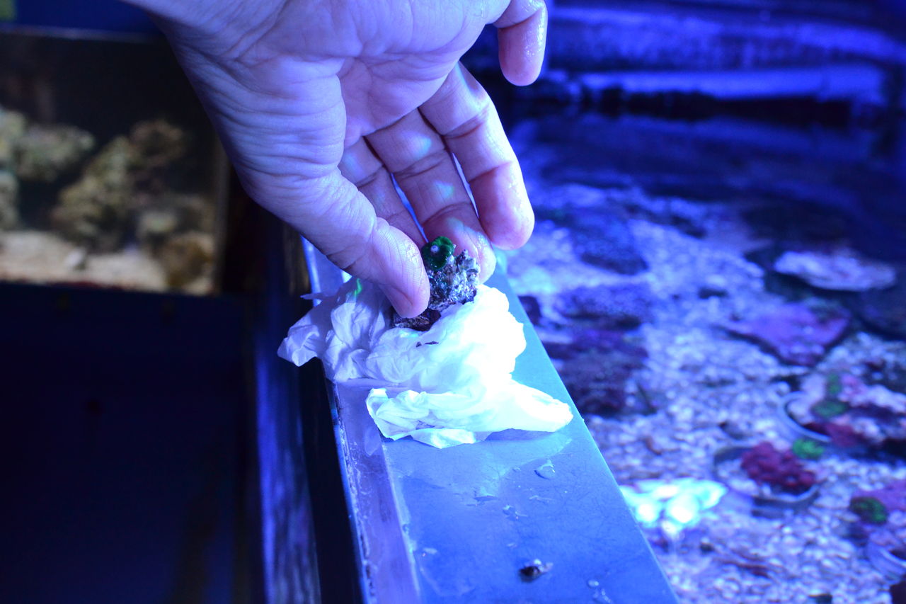 2018年01月28日 海藻処理に エメラルドグリーンクラブ 今日ご紹介するのは このカニ・・・・。エメラルドグリーンクラブ。ライブロックに自然にはえる いやらしい もじゃもじゃ苔、もじゃもじゃ海藻などを 処理するカニだ。「そもそも ライブロックから 自然に生えてくる 海藻類って 良いんじゃないの? なんか 得した気分でしょ」という 考え方 捉え方もある。 これは ケースbyケースで 水槽によっては 非常に厄介物になる場合もある。お魚を ほとんど入れない サンゴがメインの サンゴ水槽の場合 これに該当する。 サンゴ 水槽に 海藻が生えだしたら・・・・・ 大変。 サンゴが 生育する 環境と 海藻が 生育する環境は全く同じであるから 瞬く間に 増え サンゴ本体も 海藻に おおわれてしまい ・・せっかくのサンゴも ダメになってしまうのだ。そこで 登場するのが このカニである。カニ以外でも 魚類で ヒフキアイゴなども 良く食べる。ヒフキアイゴは 草食だから サンゴには 一切 何もしないので 安心して 泳がせられる。もし サンゴ水槽に 魚を入れる事が いやでなければ・・・・ くまぱぱは お勧め。そうなんだ、 人によっては、 サンゴ水槽に 余計な 魚は入れたくない?????・って いう 気持ちの方もいる。 それは 好の問題 好き好きに関わること柄だから 自由なんだけれど・・・・海藻駆除 する事が サンゴを長生きさせる ための 手段であるもの これ 事実。なかなか 難しい選択だ。そう考えると 先ほどのカニ エメラルドグリーンクラブは 一番 無難な選択なのかもしれない。