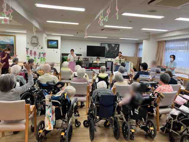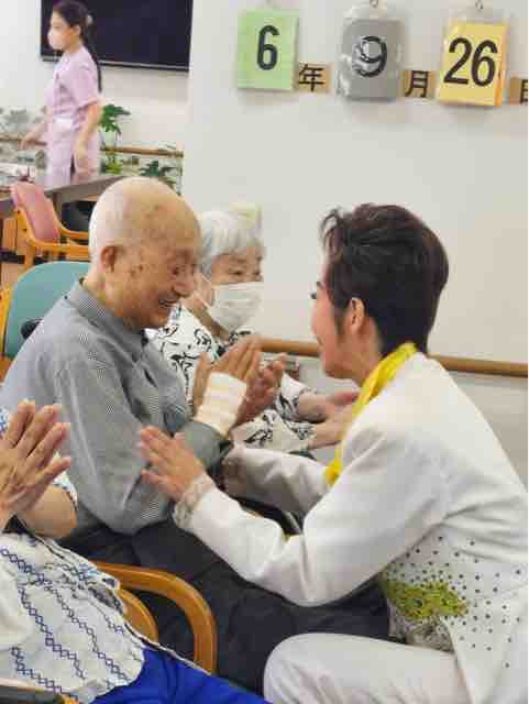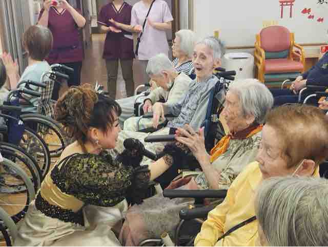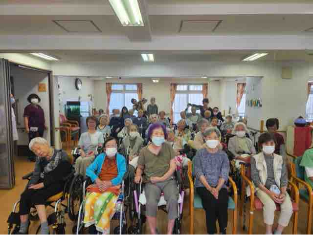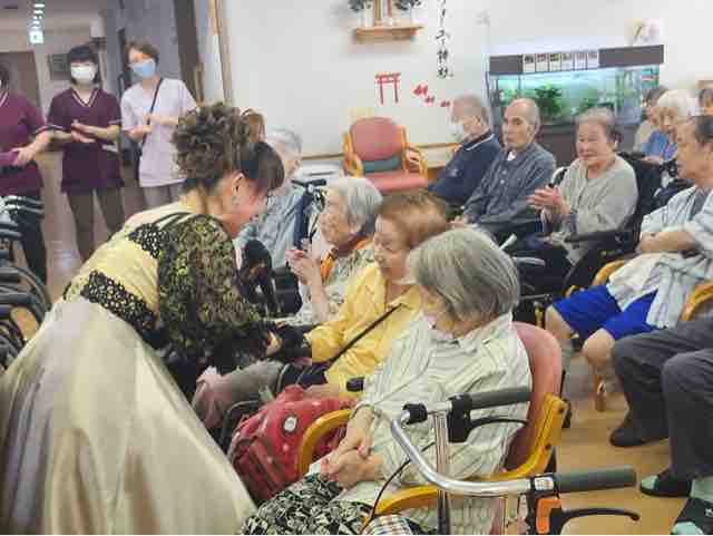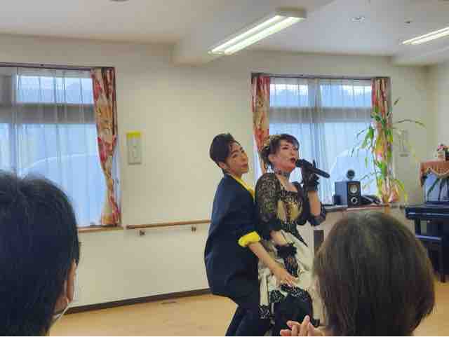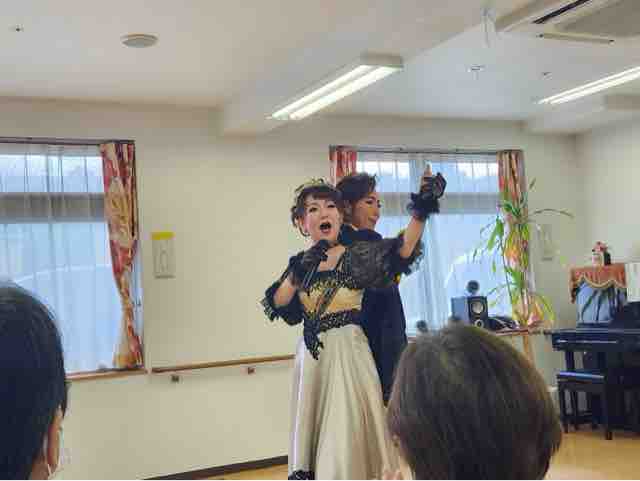 2024年09月30日 18 フォーユー大和郡山👵敬老の日 part3👴 敬老の日の締めくくりは、元宝ジェンヌなガイアクローチェさんが今年もきて下さいました。とっても素敵な歌とダンス💃楽しい😀お話しな皆さんうっとり😍夢のような時間を過ごす事が出来ました。最後はみんなで記念写真ガイアクローチェさん本当にありがとうございました♪