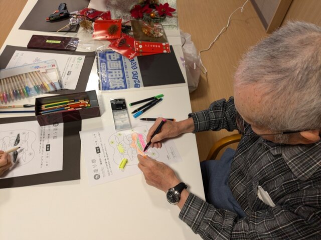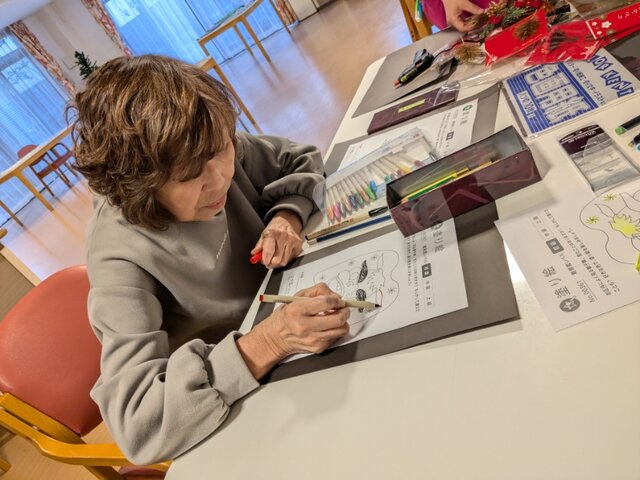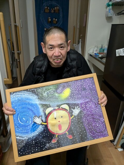 やさしい手東大阪長瀬の画伯は、時間があれば居室のアトリエで音楽を聴きながら絵を描いています。