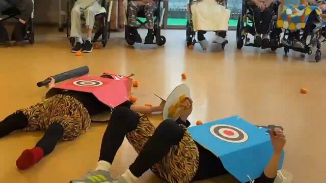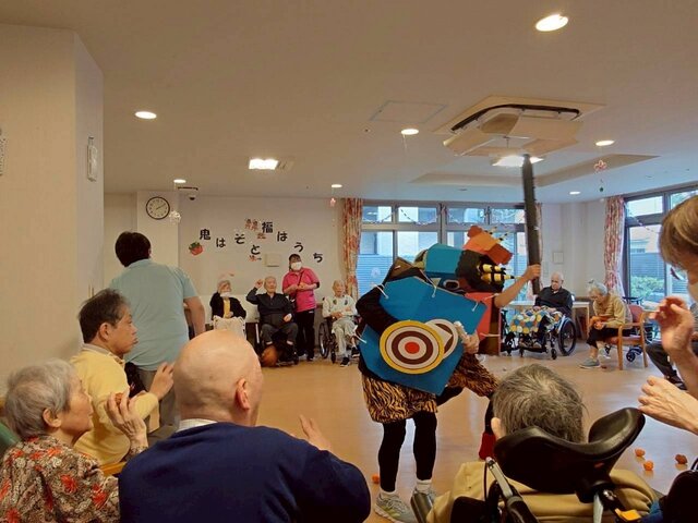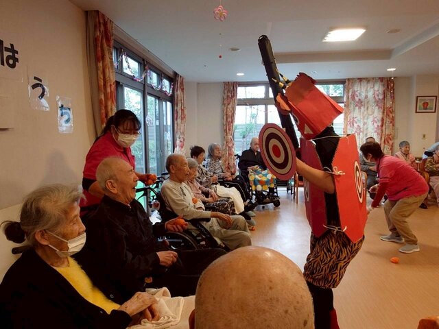 「どこから鬼が来るのかしら〜」と豆を見立てた豆ボールが食堂ではスタンバイ😁