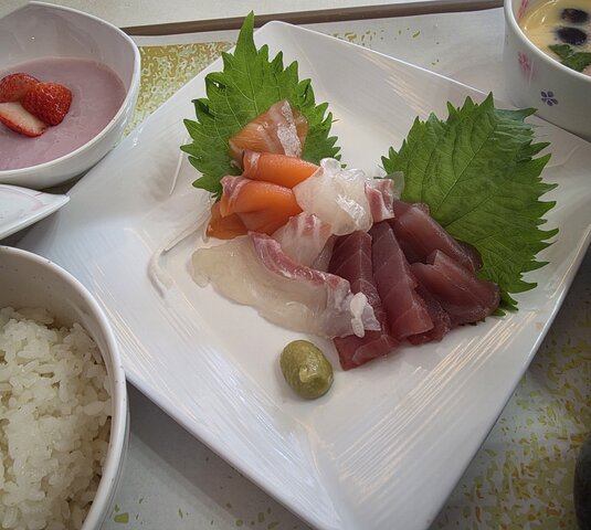 ・刺身3種盛り合わせ ・茶碗蒸し ・ほうれん草お浸し