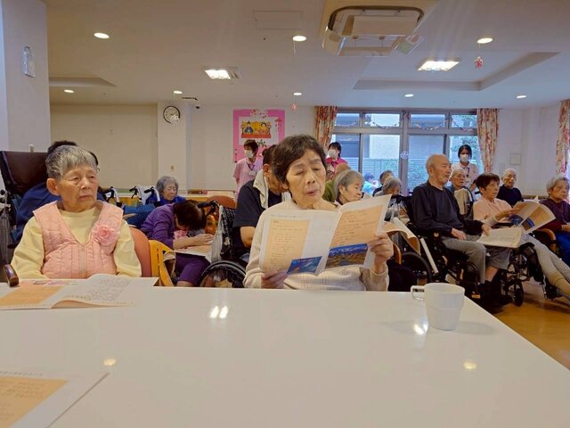 カラオケではなかなか歌えなくても、皆と歌えば歌えちゃう😉音楽レクの魔法です😊
