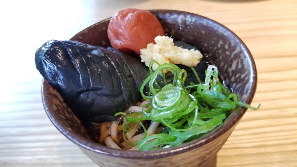 茄子の煮びたしと梅干、生姜をのせてo(^o^)o
