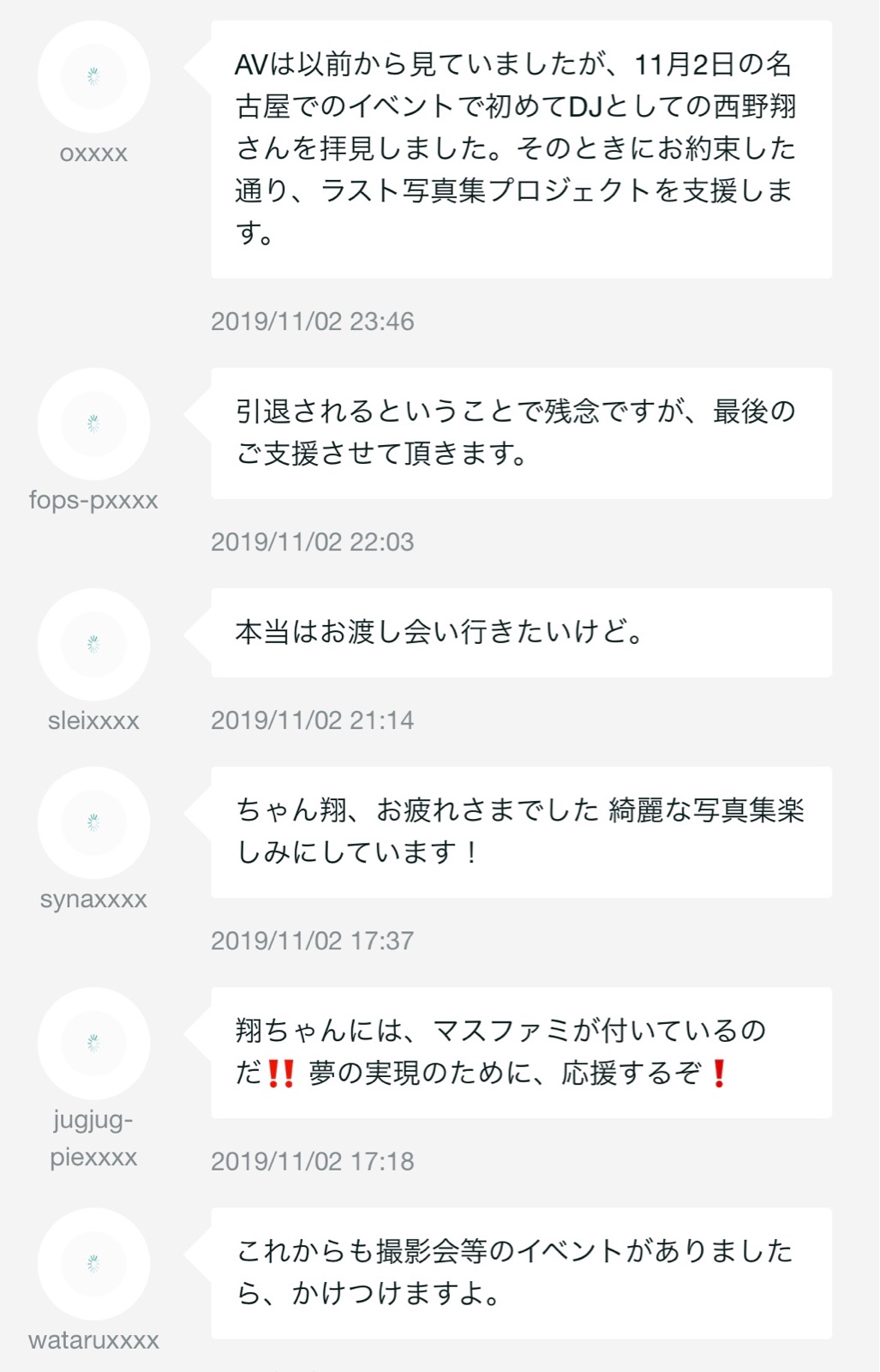 そして、西野翔はこれだけの想いをみなさんにいただいているんだな、ということを忘れずに、引退作のリリースまで駆け抜けたいと思います!