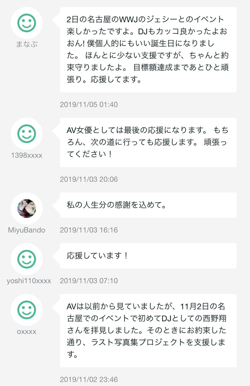 10/31よりスタートしました、西野翔AV引退ラストヌード写真集のクラウドファンディングが、先日11/15に、みなさんのおかげで無事目標達成となりました!🎉👏