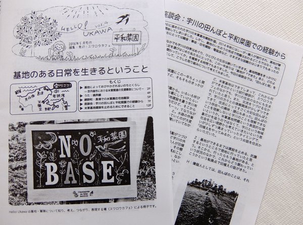 スワロウカフェがつくってきた冊子『Hello!Ukawa』の最新号(4号、2016年5月)をアップします。以下からダウンロードできます! https://drive.google.com/file/d/0B0-Hd4WzssbiUHNKVDNyOC1FcWM/viewサブタイトルは「基地のある日常を生きるということ」。全12ページ、京都の米軍基地をめぐる問題の現状、私たちの経験や思いをまとめました。