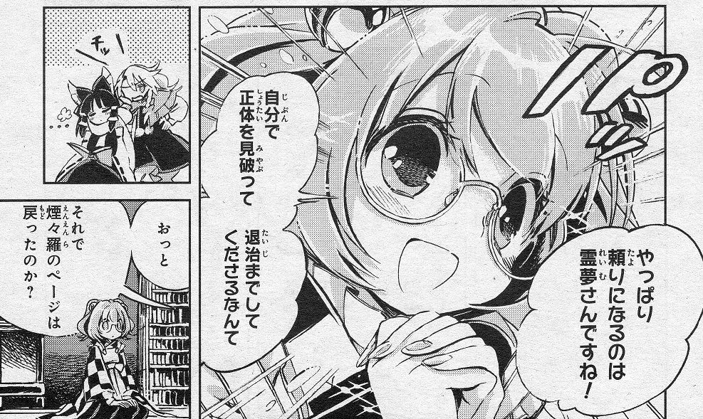 妖怪退治の知識においては、やはり魔理沙より霊夢の方が優れているようですね。