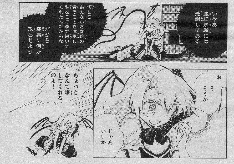 報酬が無くなったと嘆く魔理沙でしたが、蛇、もとい龍はここまで連れてきたお礼に何か褒美を取らせてくれるらしい。