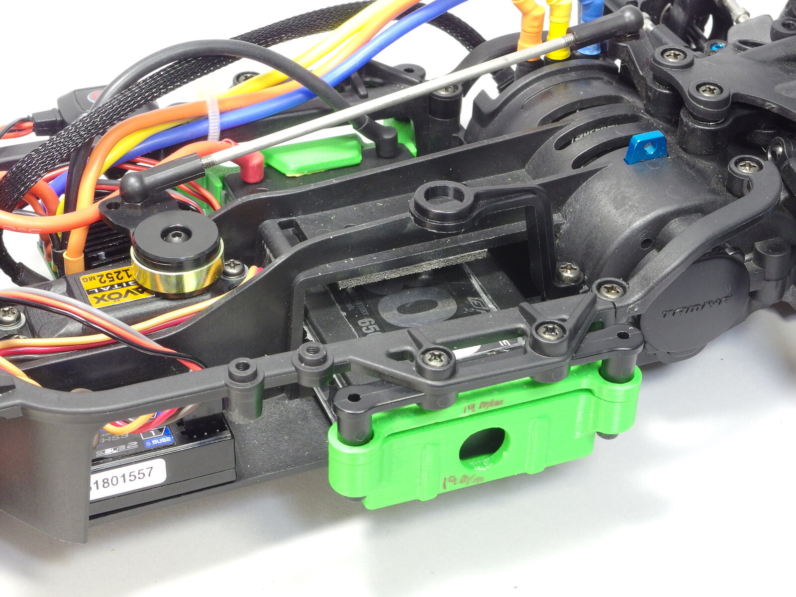 他の変更点はフロントスタビをTA-07用のロッドに交換したくらい。これはサスアーム側の取り付け部分の都合。