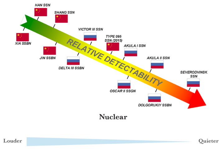 (ソ連・ロシアSSNと中国SSNの静粛性比較。米海軍情報局報告書[PDF]より)