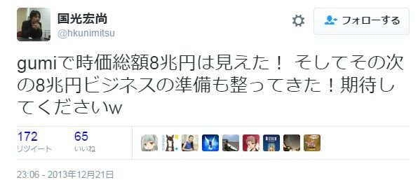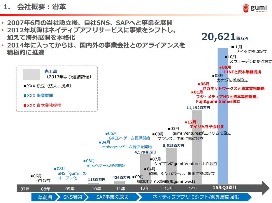 ¤³¤ÎÇä¾å¤¬¤É¤Î°Ì¤À¤Ã¤¿¤«¤Ç¤¹¤¬¡¢2014ǯÅ٤Ǥϡ¢³¤³°¥Ö¥ì¥¤¥Ö¥Õ¥í¥ó¥Æ¥£¥¢¤À¤±¤ÇÌó105²¯±ß¤ÎÇä¾å¤Ç¤·¤¿¡£Áí·×¤Ç³¤³°¸À¸ìÈǤϡ¢gumiÇä¾åÁ´ÂΤÎÌó42¡ó¡£²¿¤¬À¨¤¤¤«¤È¸À¤¦¤È¡¢Åö»þ¤³¤³¤Þ¤Ç¤Þ¤È¤â¤Ë¥Í¥¤¥Æ¥£¥Ö¥²¡¼¥à¤ò³¤³°¤ÇÇä¤ê¾å¤²¤¿ÆüËÜ´ë¶È¤¬Ëؤɤ¤¤Þ¤»¤ó¤Ç¤·¤¿¤«¤é¡£¤·¤«¤âÇä¾å¤ÎÂçȾ¤¬³¤³°¤È¤¤¤¦¤Î¤¬¤Þ¤¿¡£gumi¤¬IPO»þÅÀ¤Ç´üÂÔ¤µ¤ì¤¿¤Î¤âð÷¤±¤Þ¤¹¡£¤¢¤ì¤À¤±¤Î»þ²ÁÁí³Û¤òIPO»þÅÀ¤ÇÉÕ¤±¤Æ¤¤¤¿¤Î¤Ï¡ÖÀ¤³¦¤ò¼è¤ë¡×¤È¤¤¤¦¡¢¥Ù¥ó¥Á¥ã¡¼¤Ë¤·¤ÆÃå¼Â¤Ê³¤³°¼ÂÀӤȤ½¤Î¸å¤ÎÀ®Ä¹Àïά¤¬É¾²Á¤µ¤ì¤Æ¤Î¤³¤È¤Ç¤·¤¿¡Ê⤷´ë¶È¥Ð¥ê¥å¥¨¡¼¥·¥ç¥ó¤ËÌäÂꤢ¤ê¡Ë¡£