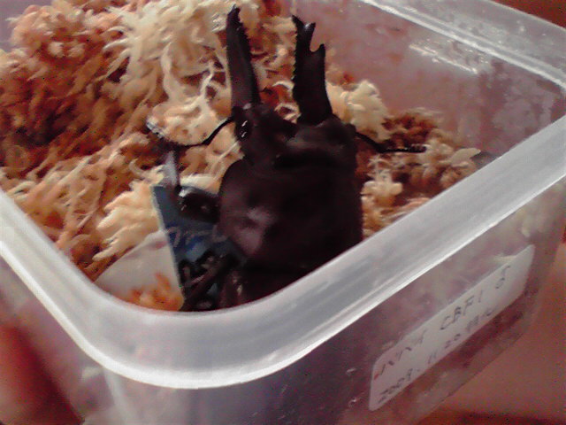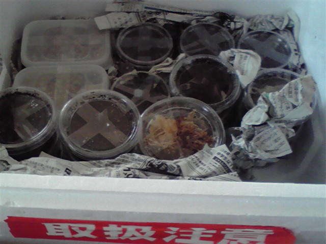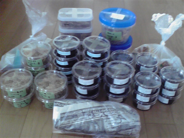 ちょうど私が駐車場に迎えに上がった時に、到着です。颯爽と降りられたてんそーさんの右手に抱えられた大きな発泡スチロールが!!もしかしてそれってと思いましたら、やはり、ギネス直子?兄弟?のサタン幼虫でした。しかも、今年羽化するとのこと!!それが、いきなりプチ余品交換会としてスタート(中身はグレートですが)