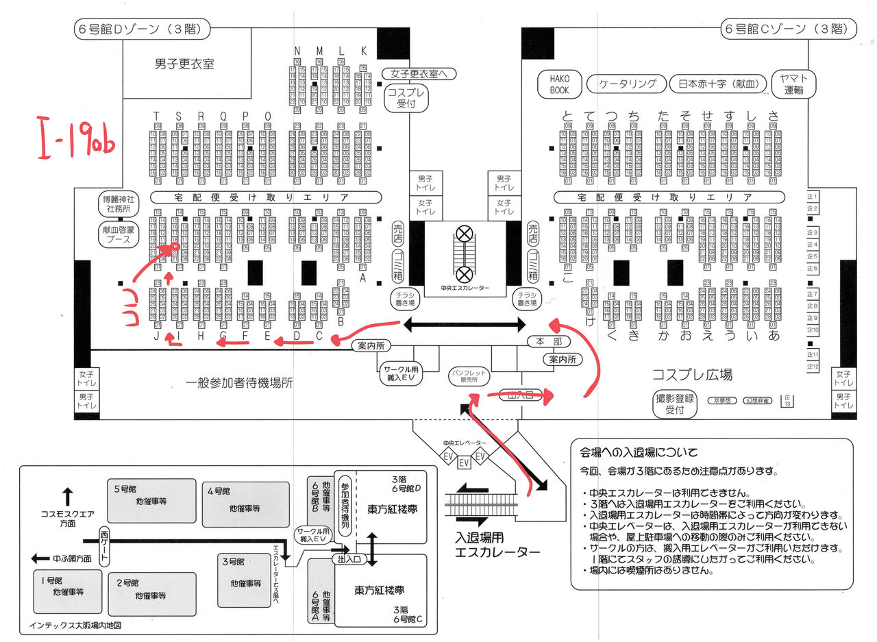 のりたまごの所属する個人サークル名は「まるみ屋」、当日のブースは「6号館Dゾーンの"I"ブロック19ab」です。