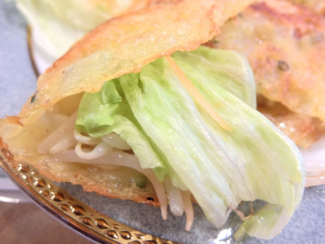 このバインセオにレタスなどの野菜を挟んでいただきます。