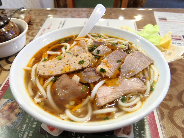 具は牛肉以外にもベトナムハムや豚足なども入っていて具沢山。”辛味汁麺”と書かれていたけど辛味はそれほどでもなく美味しくいただけました。