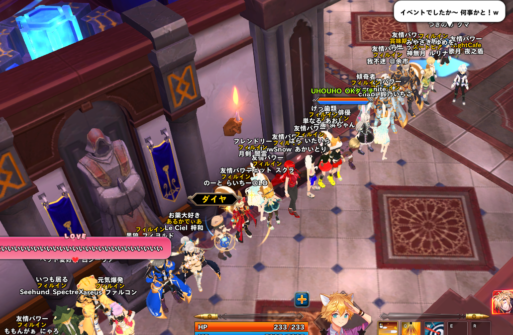 ひろこがログインしてきたときのカリスマっぷりに嫉妬