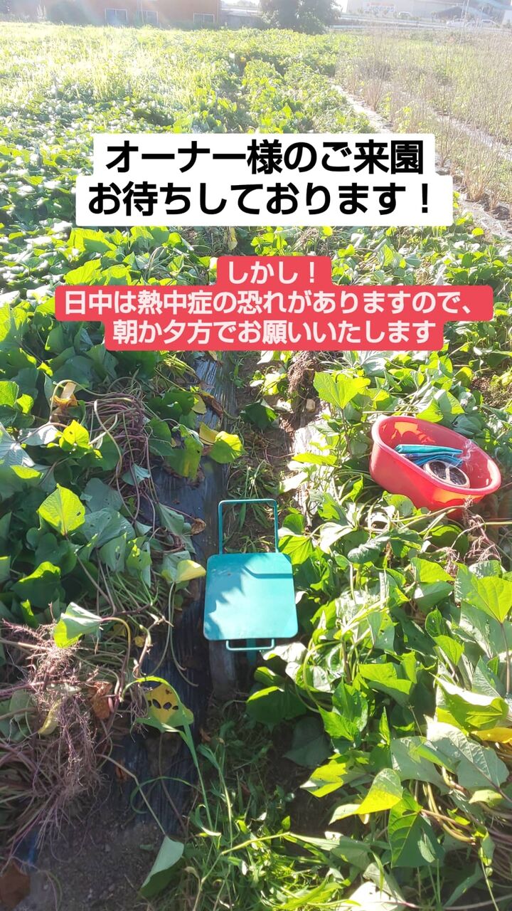 2023年08月16日 さつまいも区画オーナー様へ「蔓返し」 暑すぎる夏の間の作業は朝晩のみとなるためオーナー様達と会う機会が減りますが、皆様如何お過ごしですか?立秋を過ぎてからはほんの少しですが、涼しい時間帯も出てきましたね。とはいえまだまだ朝は9〜10時頃まで、夕方は4時以降。日中は畑にはおりません。畑でお買い物や、オーナー様のご来園、農作業のお手伝いなど、日中は対応致しかねますので何卒ご理解いただきますようお願い申し上げます。ともはぐのお野菜をお求めの方は基山駅すぐ近くの「魚よし」様に置かせてもらってますので、ぜひのぞいてみてね♪もしくは農woman茜の直接ご連絡下さい。日中畑にいないのは、言わずもがな熱中症対策でございます。6時でギラギラ、7時には背中がジリジリ、8時には汗がダラダラ、9時にはソソクサと退散です。やることは盛りだくさんで後ろ髪を引かれる思いではございますが、体を休めることも仕事のうちと考えております。また、日中のご来園を気軽に対応することで、夏の畑に慣れない方々を熱中症の危機にさらしてしまいかねないからです。日中しかご来園が叶わない方がおられることも重々承知しておりますが、ご理解いただきますようよろしくお願い致します。朝夕の作業で畑の手入れは頑張って参りますので、エールを送って頂けたら幸いです。さて、さつまいも区画ですが、朝夕のご来園が可能な方はぜひお世話にお越しください!ものすごく元気に茂っております。蔓がどんどん伸びまして、マルチを大幅に越え、畝間の土に根を下ろそうとしています。すでに根を下ろしているところも多々ございます。このように伸びた蔓が根を張ると、そこにも芋を付けようと養分を分散しますので、本来芋がついて欲しいところに芋が付かなくなります。根っこのようなひょろひょとした、芋とは呼び難い仕上がりとなってしましますので、この蔓は引っ剥がします。今ならばまだぺりぺり~っと気持ちよく剥がれますので、優しく蔓を折ったり切らないようにして、剥した蔓は生い茂っている葉っぱと上にひっくり返すように乗せてください。この作業を蔓返しと言います。この蔓返しを夏の間にすることで蔓ボケ(蔓ばかりが生い茂って実が付かないこと)防止となり、実付きが良くなります。ご来園が可能な方はぜひともこの蔓返しをお願いいたします。無理は禁物です。何度も申しますが😅わたくし農woman茜も日中は対応致しかねますm(__)mみなさま、くれぐれも熱中症にはお気を付けくださいませ。ともはぐ農woman茜