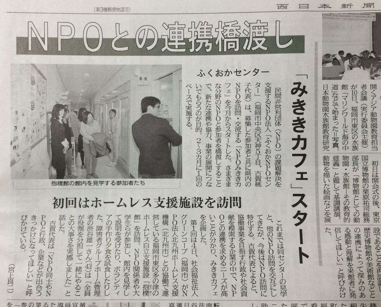 12/4開催「NPOみききカフェ」、西日本新聞朝刊にて報告記事掲載