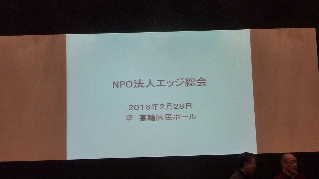 2/28(日)、港区立高輪区民ホールで第15回NPO法人エッジ総会が行われました。5つの議案は無事、満場一致で承認されました。今回は理事の交代があり、新体制に向かって、新たな出発となりました。16年目の船出です。