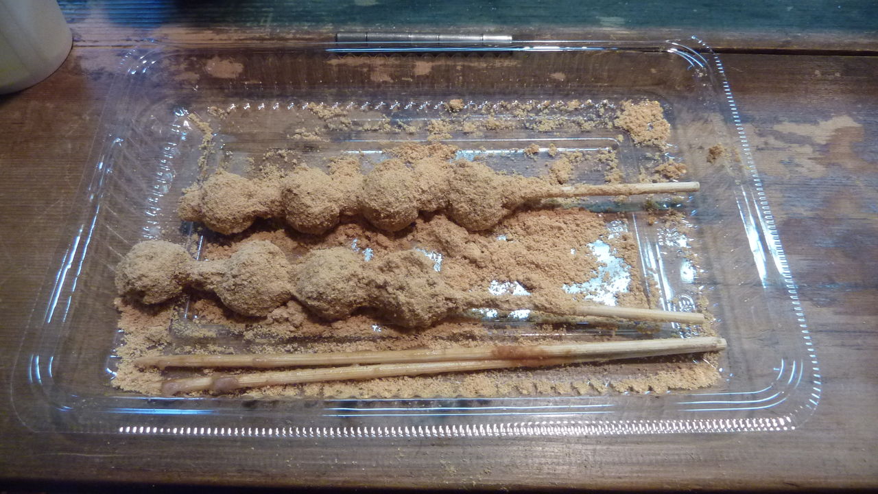 甘い団子と辛い団子の二本とお茶でまず出発の腹ごしらえです。早くしないとすぐ固くなってしまうので、すばやく食べました。店内のレトロな家具や庭を眺めると、心は明治時代に戻ったようでした。