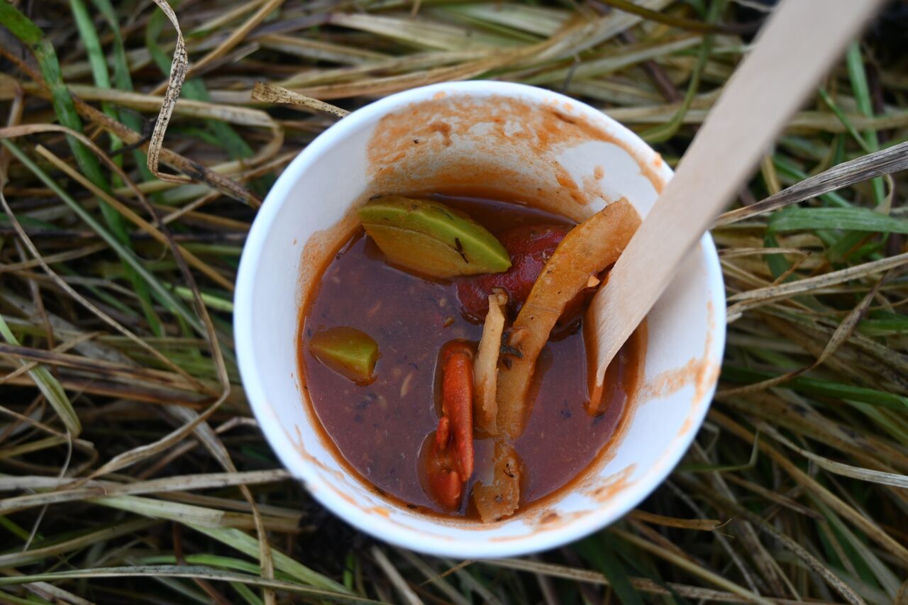 今回はライギョのブイヤベースとシェリー酒でした。スープの中にタニシとザリガニがよく煮込まれていて、美味しかったです。今回も全員、完食でした。ごちそうさまでした。