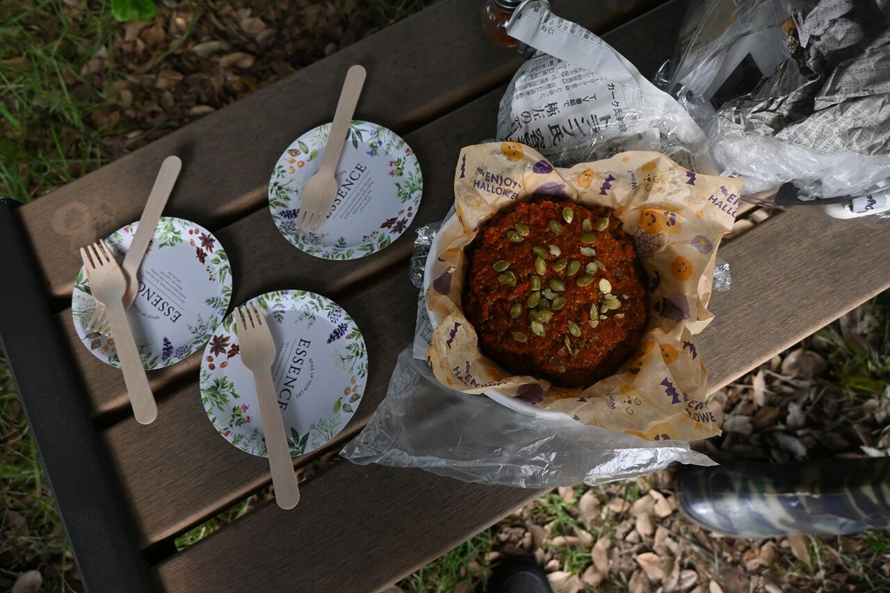 朝から雨が降り、開催が危ぶまれましたが、集合場所に集まったときには、すっかり雨があがってしまいました。参加者は平井川の支流へ徒歩で向かいました。風が強くなると携帯コンロの火が使えなくなるので、先に食べることになりました。