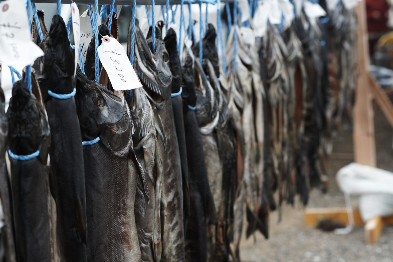会場には山田に遡上した鮭を使用した新巻鮭がずらりと吊るされ、少しずつでも山田町は復興に向かっているのだと感じました。