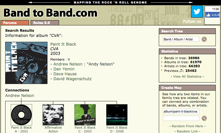 Twitterで流れてきた記事から、面白いサイトを見つけました。メンバーのバンド遍歴が調べられるサイト、Band to Band.comです。