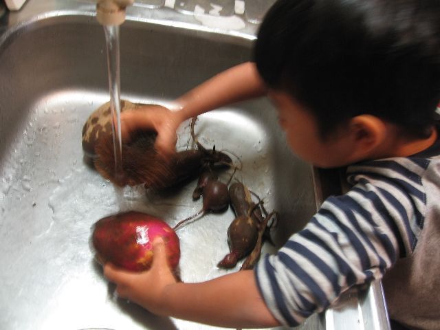 息子が保育園のお芋掘りで
