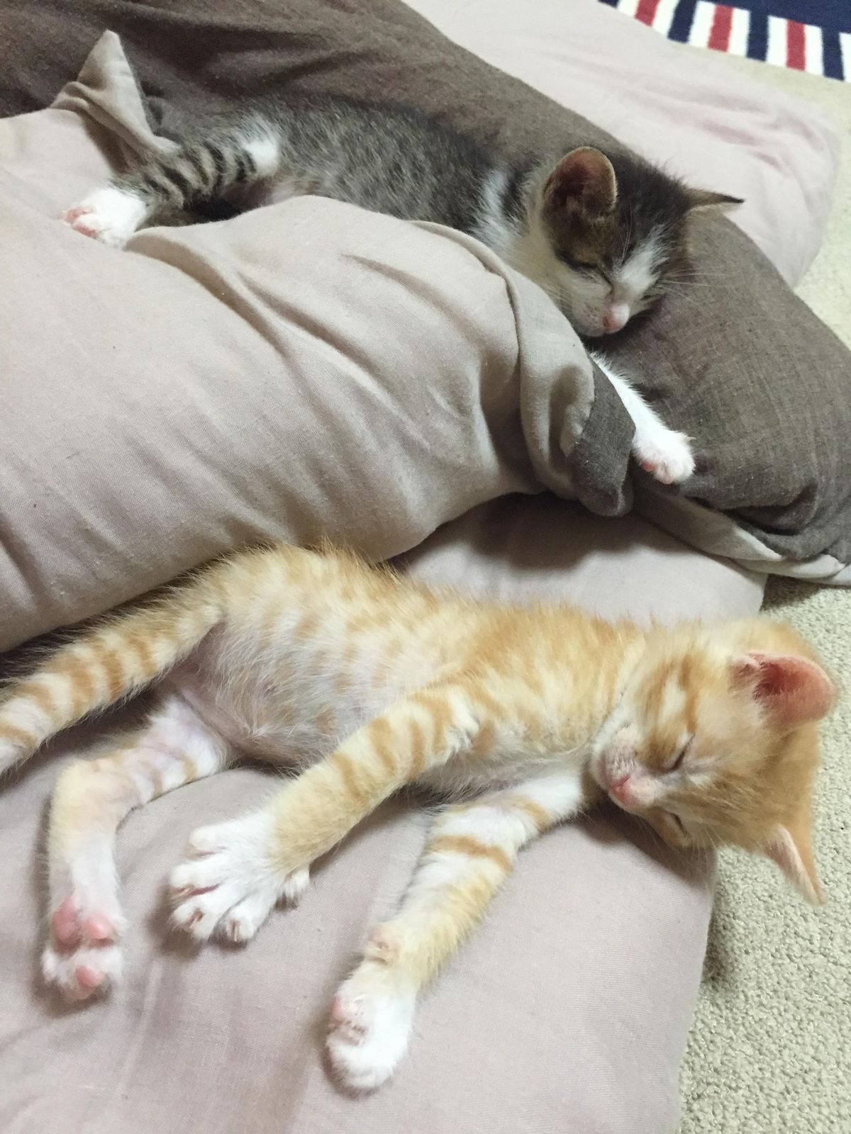 子猫拾う前はめちゃくちゃ人生辛くて仕事もやめてって感じだったけど、この子達に出会って人生変わったよ