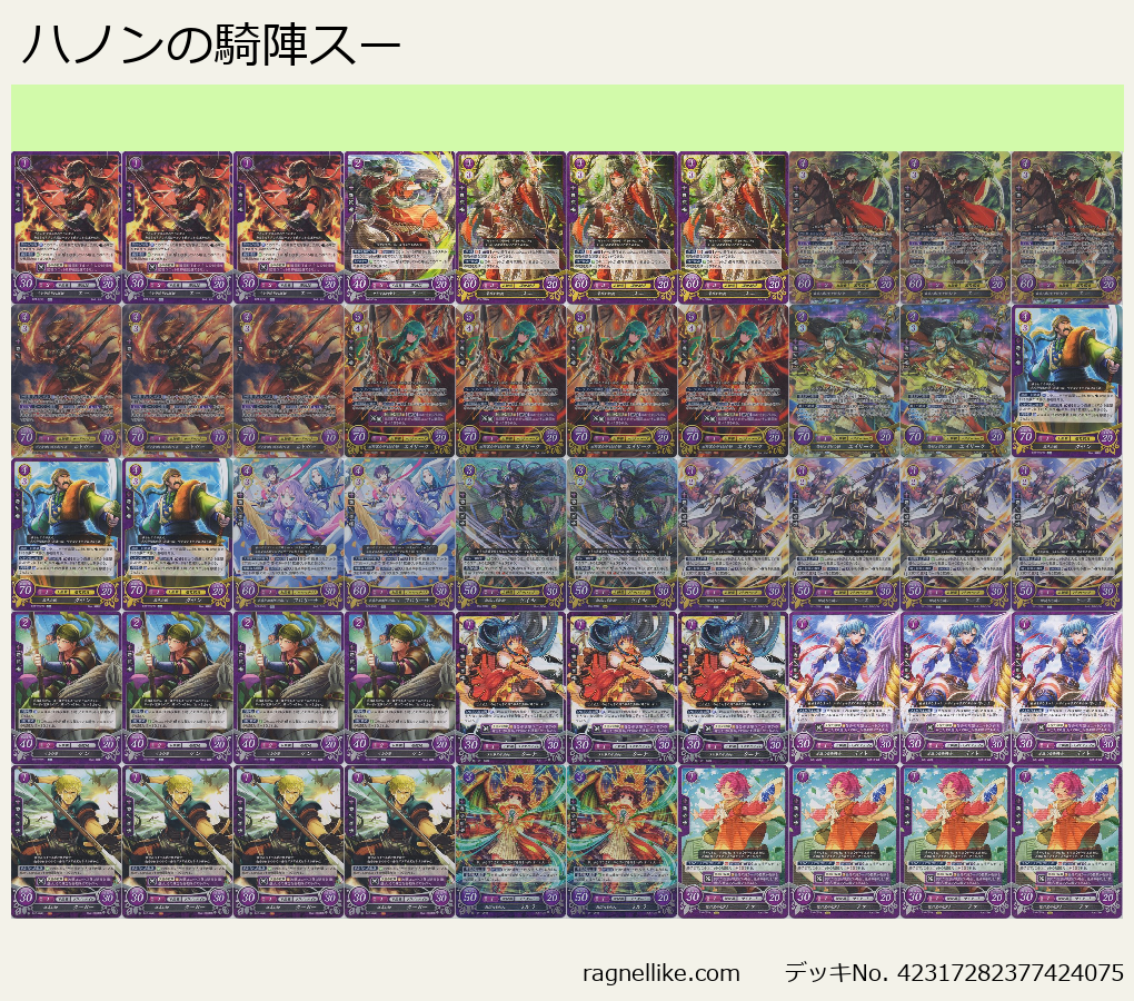 エイリーク:17弾5cエイリークでハノンの騎陣で置いたカードを1リバで出撃したり回収出来るのがえらい。22弾4cエイリークも普通にえらい。