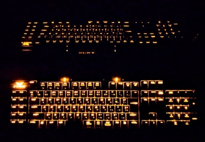 説明をぜんぜん読まずに青軸というだけで購入したので、USBつないだ瞬間、全体が濃いオレンジに光ってホタルみたいに点滅しはじめたのには驚きました!