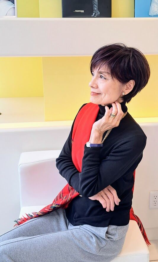 チェックのストールを持つだけで、華やかに、