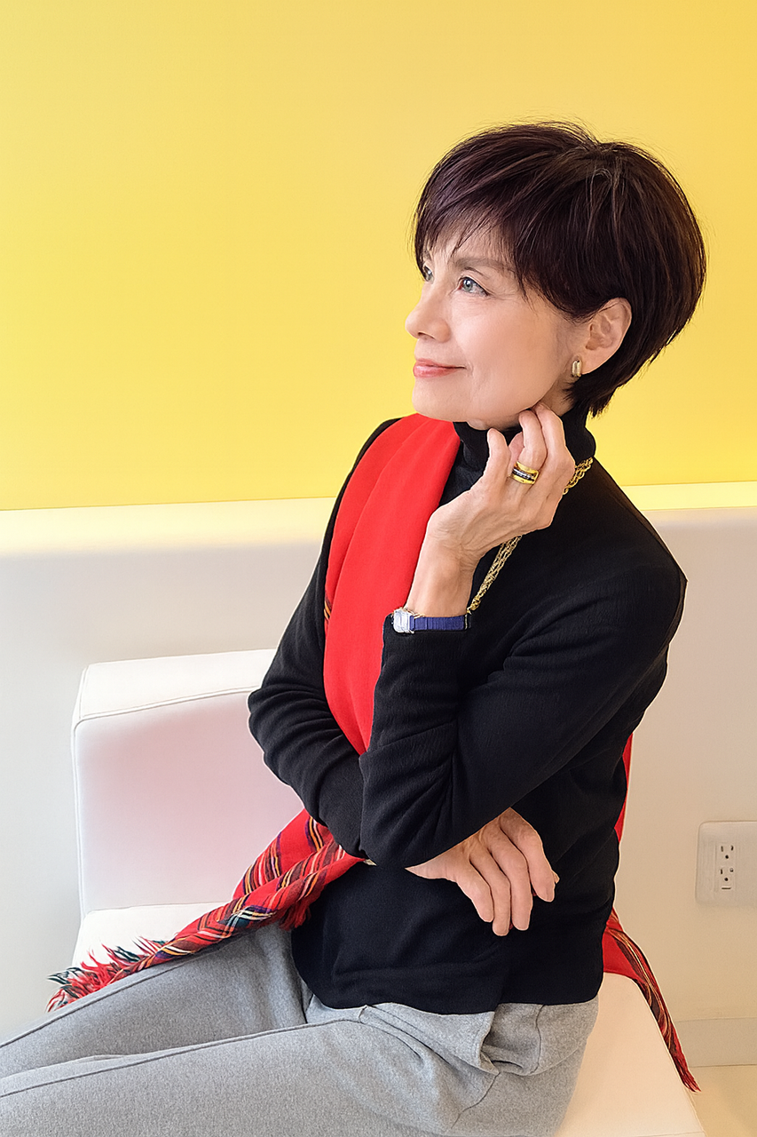 グレー×イエロー大好きな色合わせ 昔のバーバリーのマフラーもトレンド竹久夢二の京都