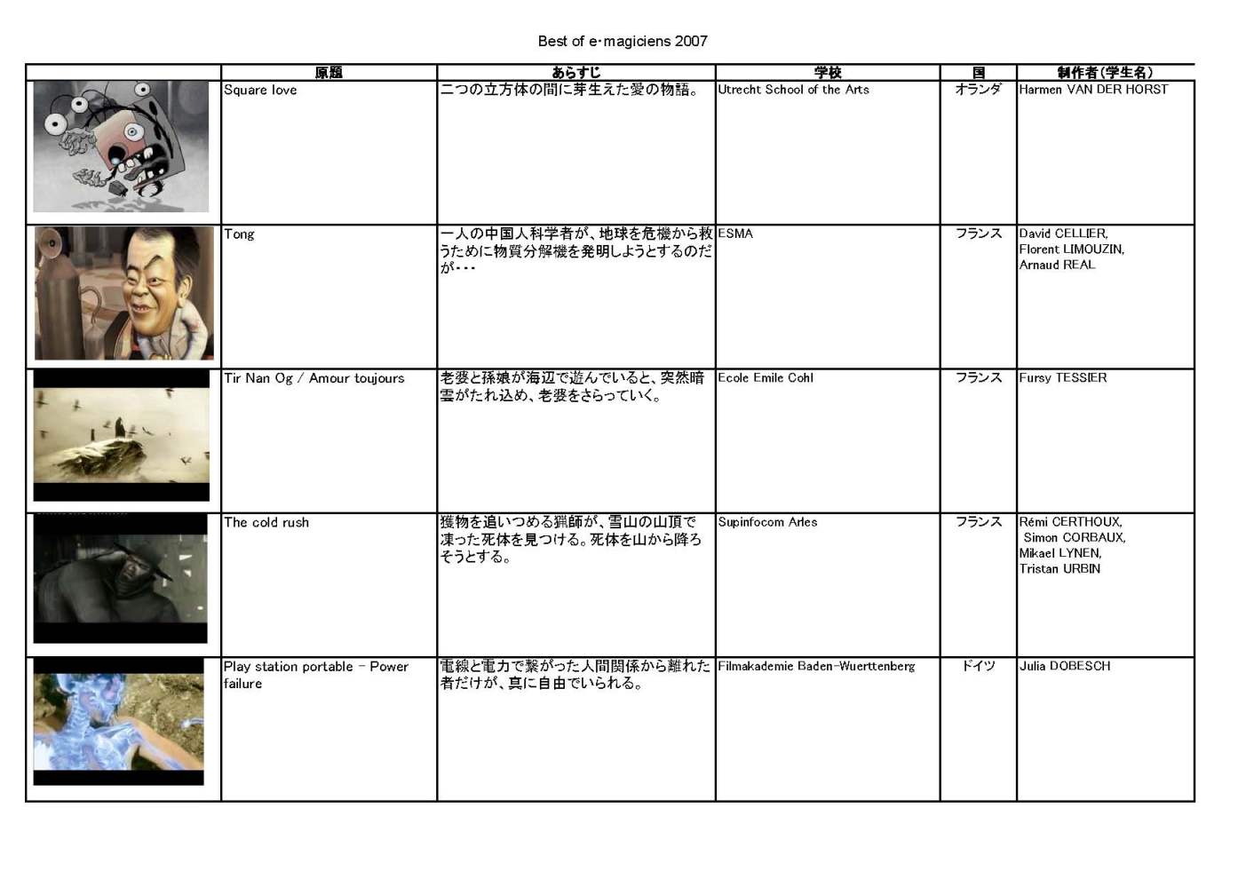 フランス北部のヴァランシエンヌでおこなわれる、ヨーロッパの若手ディジタルクリエーターたちのミーティングであるles e・magiciens(Les Rencontres Europeennes de la Jeune Creation Numerique、代表:マリーアン・フォントニエール、e・magiciens ジェネラルコミッショナー)への関心はますます高まっています。