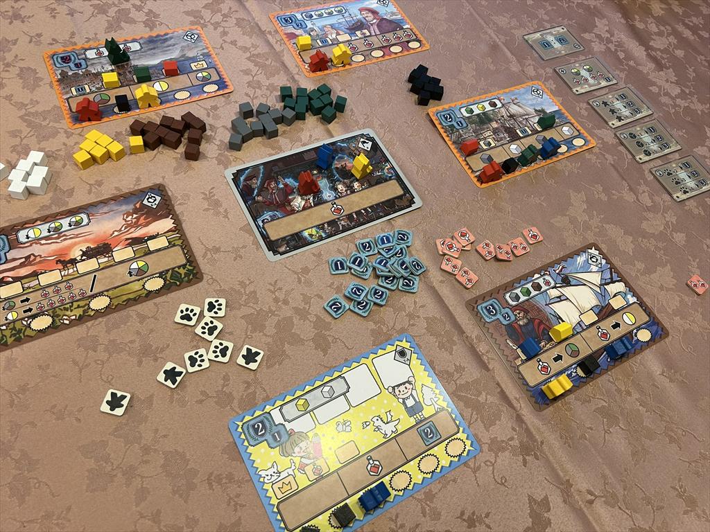 時空カード上で他の人に押されて獲得できる資源がグレードアップしたり、個人ボードを発展させて出来ることが増えていくのが楽しいです。