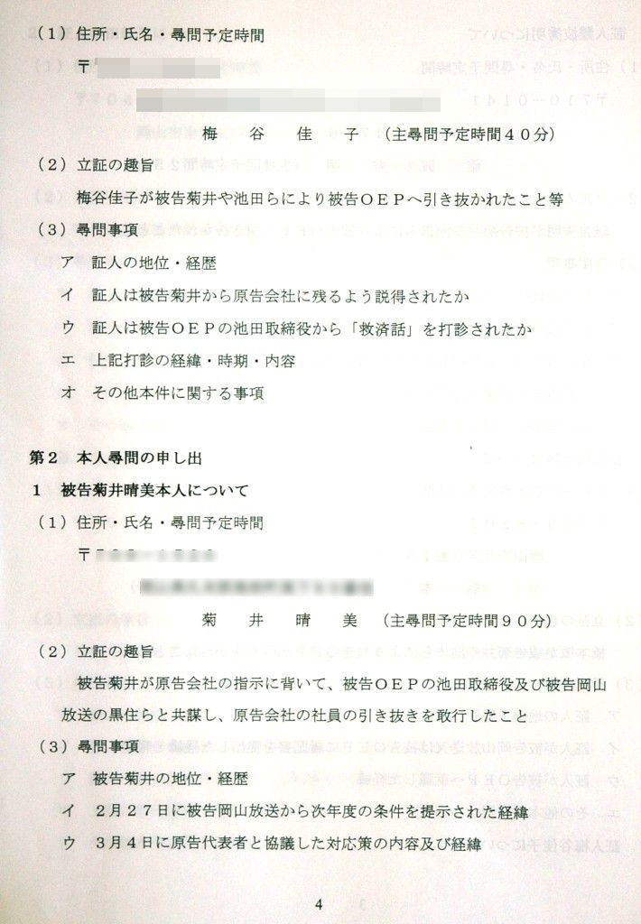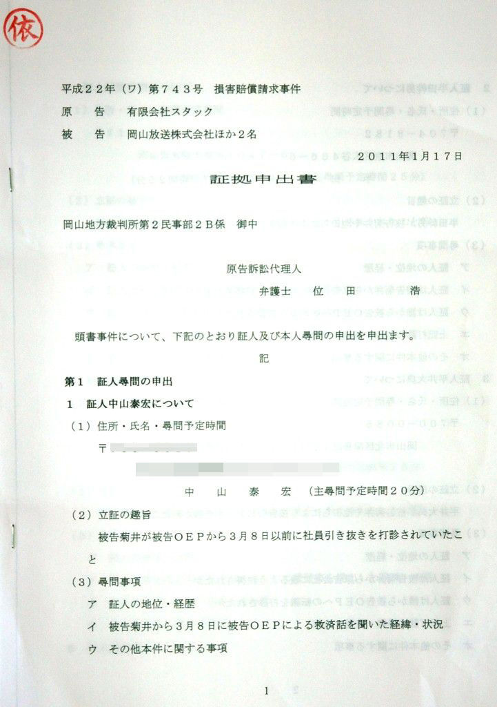 岡山放送(OHK)下請け業者切り捨て裁判 原告側証拠申出書