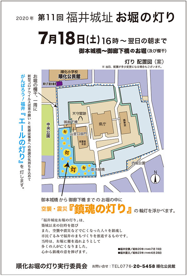 順化お堀の灯り実行委員会では、主旨である福井空襲・福井震災で