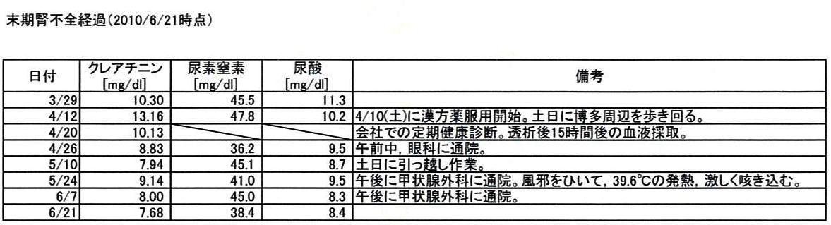 ¡¡£¶¡¿£²£±¡Ê·î¡Ë¡¡¥¯¥ì¥¢¥Á¥Ë¥ó7.68mg/dl¡£